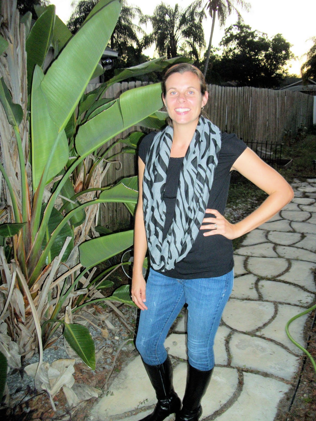 I absolutely love all the scarves out there. However, living in Florida we don't really get too many opportunities to wear them. But it's not really about the weather is it? It's about looking and feeling great! It seems that all the looks I've repinned on Pinterest have scarves. So, I've decided I'd like to incorporate more scarves into my wardrobe. I love the infinity scarf, so here is my go at it. I actually found I could wear it a few ways too. By the way, sorry about my lovely hair in the photos. I was about to head out for my soccer game. After I changed that is!